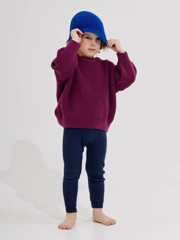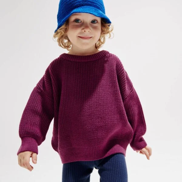 Piękny, mięsisty sweter merino o kroju oversize. Wykonany z największą dbałością o detale. Wkładany przez głowę, niezwykle miękki i elastyczny zapewnia wygodę noszenia, nie ogranicza ruchów dziecka.